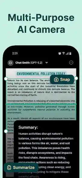 AI Chat Smith can summarize long documents, PDF files, and even YouTube videos in just a few seconds. You paste a video link and the app extracts key points and creates a clean summary automatically. I use this feature regularly to catch up on long tutorial videos without watching them entirely. The PDF scanner reads uploaded documents and answers questions directly from the content inside. This saves hours of reading time and makes studying or research far more efficient every single day.