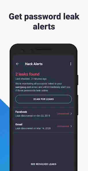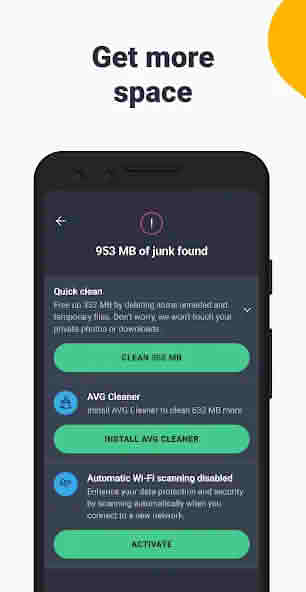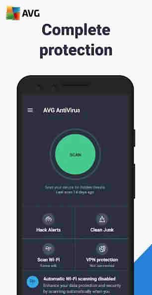 AVG AntiVirus virus scanner scans every file, application, and storage space on your device and deletes any harmful files or viruses if they are detected. It automatically scans, and you can run a manual scan anytime. It also automatically scans newly installed apps to ensure no malicious code is introduced.