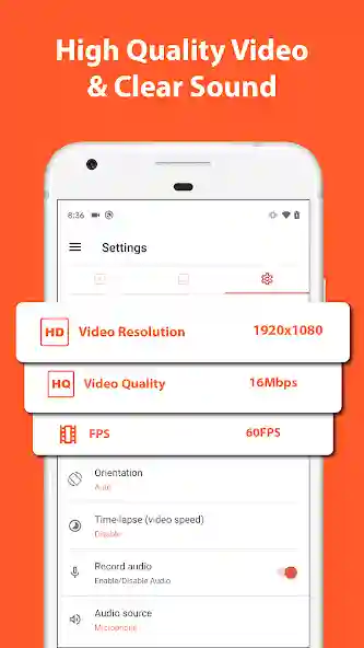 The app records in high quality so you can see every detail on your screen. You can choose how sharp you want your recordings to be, from HD to 4K.