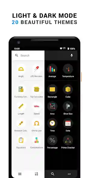 The moment you open CalcKit, a smart search bar sits at the top of the screen. You type any calculation type and the correct tool appears instantly. Need to calculate compound interest? Type it. Need to convert kilowatts to horsepower? Search it. Need resistor color code values? It is already there waiting. CalcKit includes tools for algebra, geometry, electronics, construction, health, finance, physics, and dozens of other categories. The scientific calculator mode handles editable input, cursor navigation, memory keys, calculation history, and even graph plotting for complex equation work.