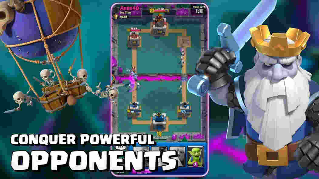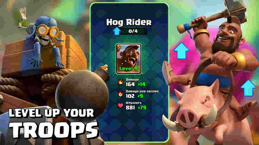 The main strength of the Clash Royale game is upgrading the cards. Although it is time-consuming in the normal version, in the mod version, you can instantly level up any card you want. As a result, winning the battle becomes easier.