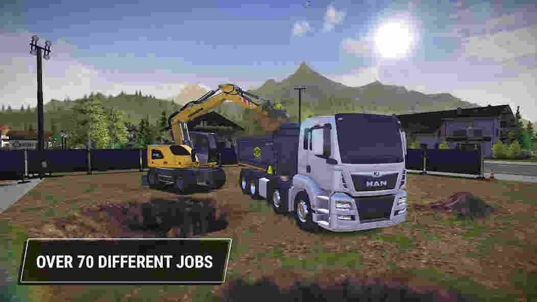 This game includes various types of jobs such as building roads, building houses, building bridges, building driveways, and many more difficult and fun projects. In the mod version, all these jobs are unlocked from the start, so you can do any job of your choice from day one.