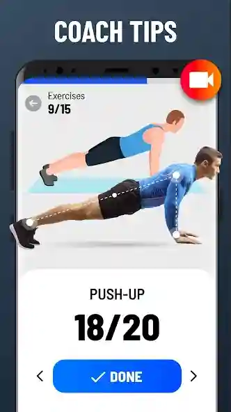 Answer: The app includes push-ups, squats, planks, lunges, crunches, burpees, and dozens of other bodyweight exercises.