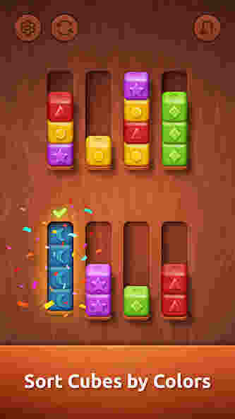 This game takes the classic color sorting concept and elevates it with high-quality design. Your goal is simple: sort colorful blocks into their respective containers until each tube is filled with a single color. However, unlike generic puzzle games, Colorwood Sort focuses on the “feel” of the gameplay. The wooden block puzzle aesthetic appeals to players who are tired of flashy, neon graphics. Every time you tap a block, you hear a satisfying “clack” and feel a subtle vibration. This multisensory experience turns a simple brain training exercise into a therapeutic session. It is designed to be accessible to everyone, using distinct shapes and symbols to help those with color vision deficiencies.