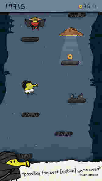 The goal is simple: jump as high as you can. You control “The Doodler” by tilting your device left or right. Along the way, you encounter springs, trampolines, and jetpacks that launch you higher. But the path is dangerous; broken brown platforms crumble under your feet, and menacing monsters (like the three-eyed alien or the UFO) block your path. You defeat enemies by tapping the screen to shoot nose-balls. It sounds easy, but as you climb higher, the game moves faster, the platforms get smaller, and the margin for error disappears. It is a test of pure reflex and focus.