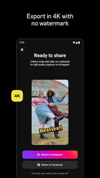 The biggest advantage of Edits Mod Apk is there is no watermark when exporting videos. As a result, your videos will look more professional and it is also very useful for branding.