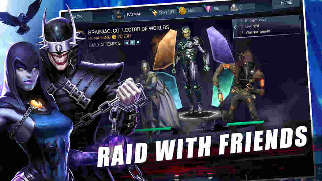 This game brings the hard-hitting combat of the console version to your fingertips. The combat system relies on a mix of taps, swipes, and heavy attacks, but the real depth lies in the “Super Move” system. Every character has unique special abilities that trigger cinematic cutscenes, dealing massive damage. The roster is a DC fan’s dream, featuring multiple versions of iconic heroes. You can play as the armored Batman Ninja, the divine Collector of Worlds Superman, or the terrifying League of Anarchy Joker. Each team has passive abilities that synergize with each other, meaning a well-built team of Silver characters can sometimes outperform a Legendary team if played correctly.