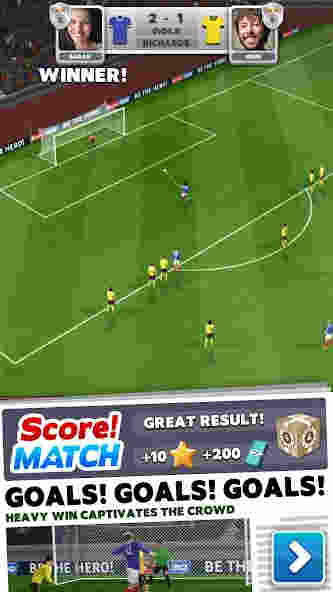 Score! Match is a mobile football game. It is a fast-paced one-on-one soccer experience. You control every player on the pitch. You make the passes, the tackles, and the shots. The goal is simple. Outscore your opponent. You can play against friends or challenge players from around the world in real-time matches. The game features sharp 3D graphics and stadium atmospheres that pull you into the action. You build a team, recruit players, and compete in tournaments. It captures the tension and excitement of a real football match in a quick, pick-up-and-play format.