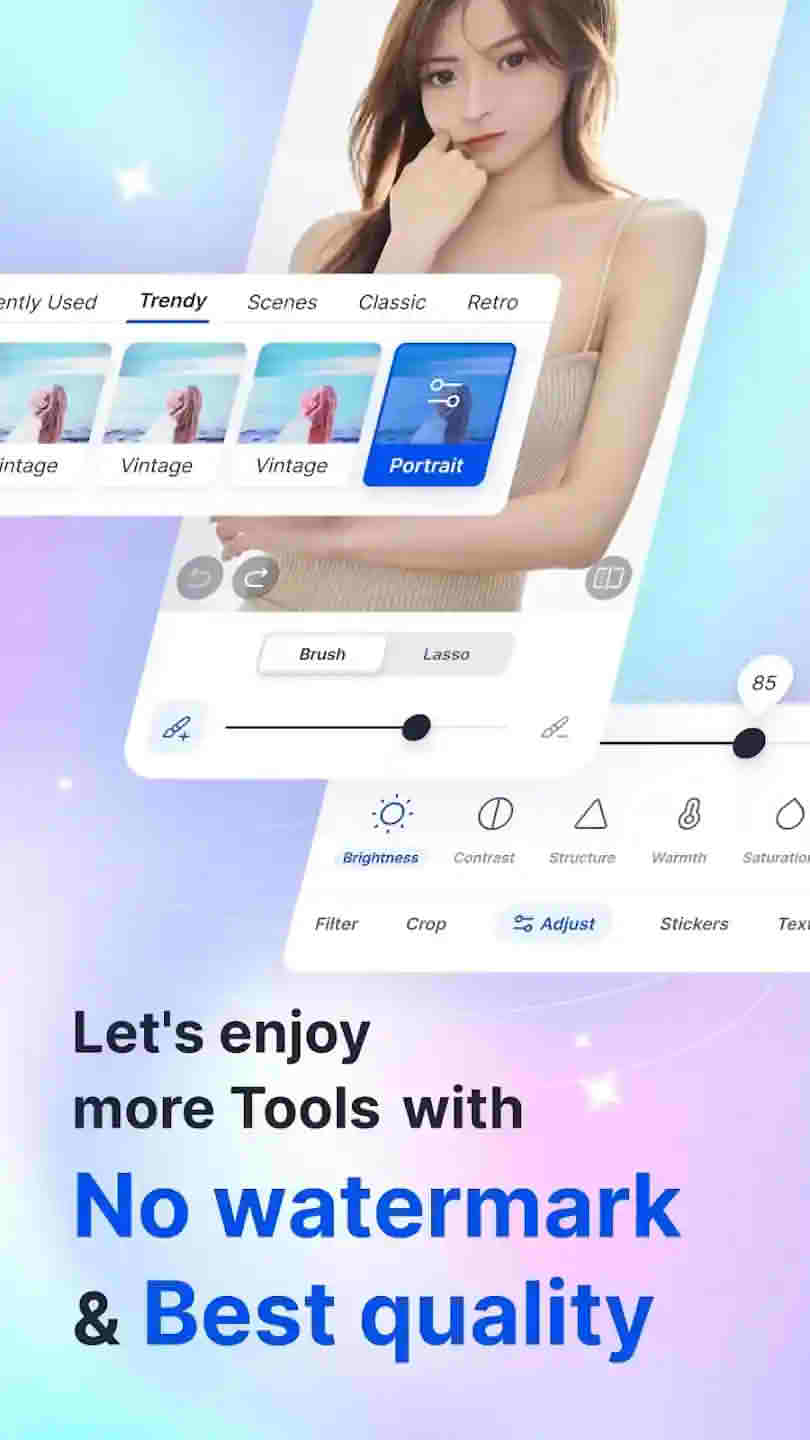 SnapEdit Mod Apk lets you add custom stickers and add text to images. You can make the photo fun and attractive by using different stickers and fonts.