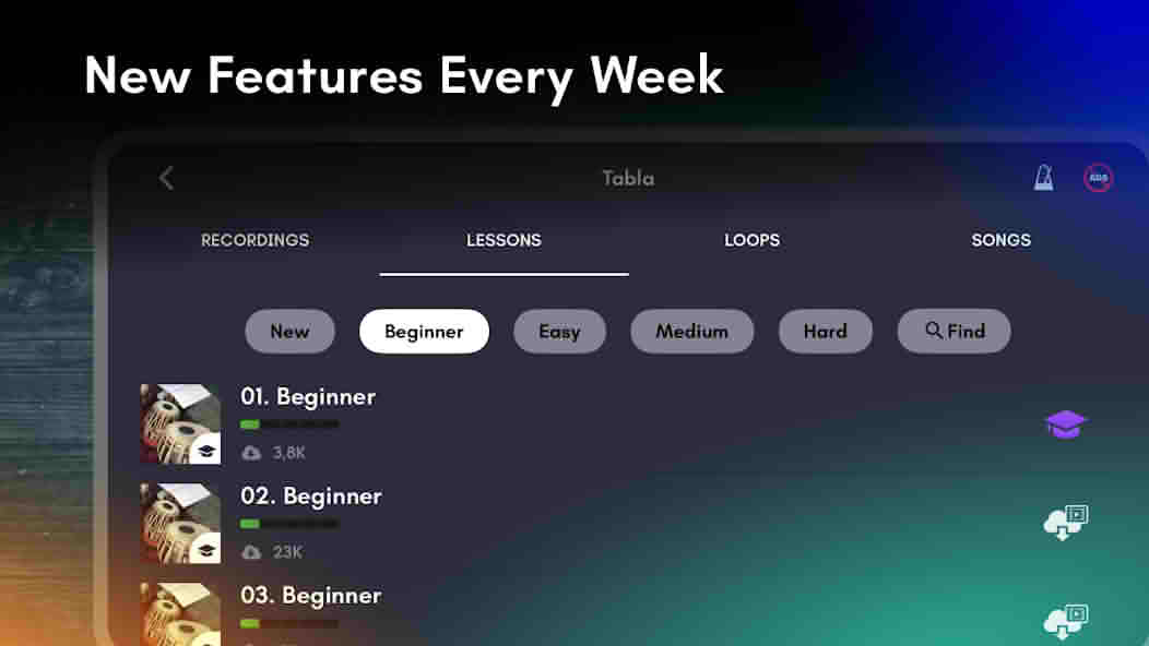 This application uses such a high-quality audio engine that every beat of the tabla sounds very realistic. As if you are really sitting and playing in a music studio. Using it, you can really get the feel of the real tabla.