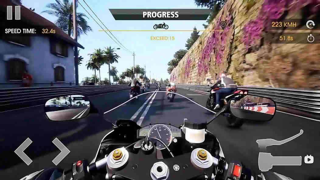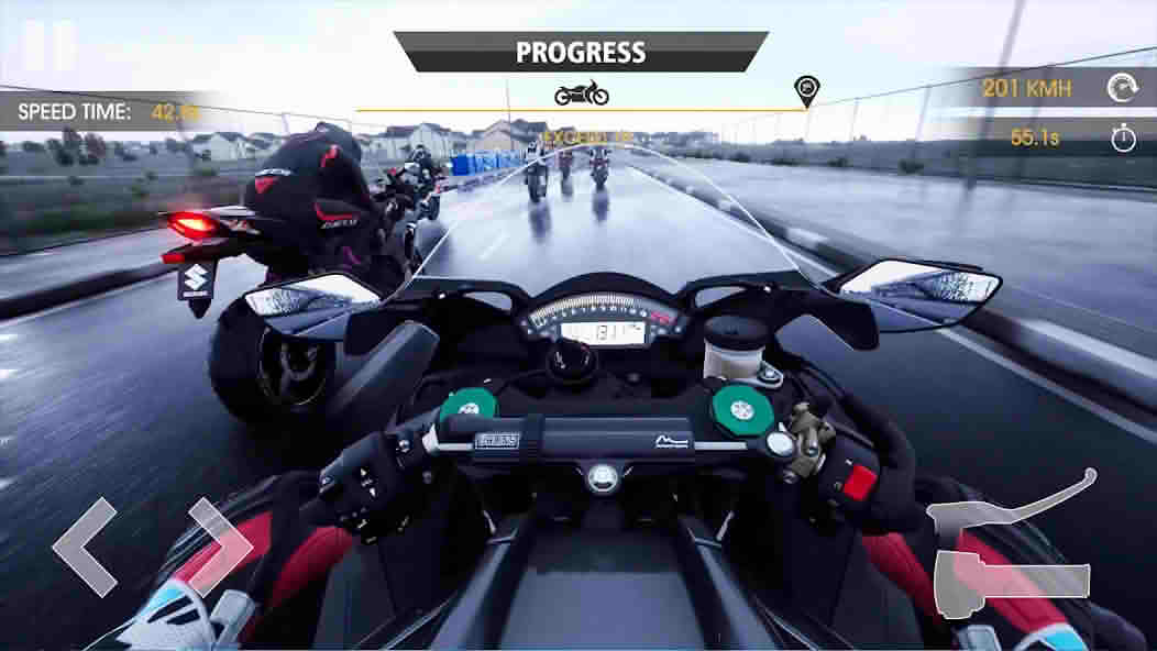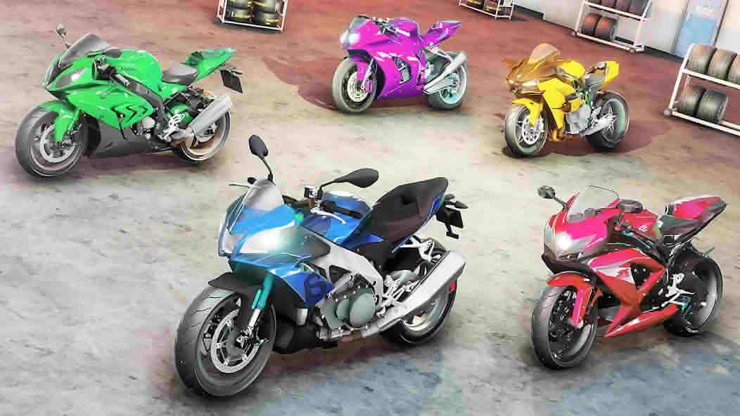 The game has a great collection of motorcycles, from street bikes to fully faired superbikes. The enhanced version opens the entire garage from the start. You can browse through every model, find your favorite, and start racing with it immediately.