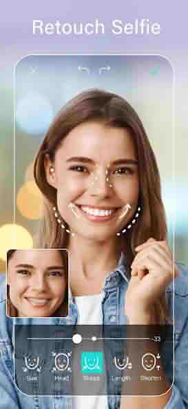 If you want to change your body shape in your photos, YouCam Perfect’s body shaping tool gives you that opportunity. With this you can make your image slim, toned, and attractive.