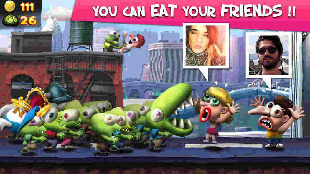 Zombie Tsunami is a game where you control a group of zombies running through a city. You tap the screen to make them jump. Your goal is to eat many people as possible to make your group bigger and survive for as long as you can. The game is made by Mobigame and over 400 million people have played it.