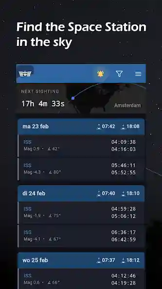 The main thing that makes ISS Detector Pro Mod important for people who love space is that it can track the International Space Station accurately. The app uses a lot of data to figure out where the ISS is and when it will be visible from your location. You get alerts a minutes before the ISS appears so you have time to find a good spot to watch it. The app tells you where the ISS is coming from how high it will be in the sky and how long it will be visible. This way you know where to look and for how long. Some passes are better than others. The app helps you find the good ones.