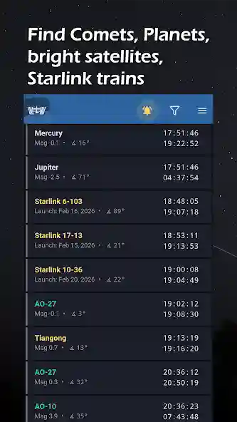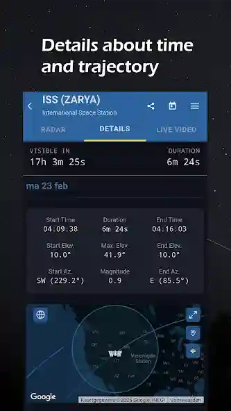 ISS Detector Pro Mod also helps you track comets and planets in our system. When a comet is bright enough to see the app provides tracking information and viewing opportunities. The same goes for planets that’re visible in the night sky during certain times of the year. This feature makes the app useful for more, than satellite tracking. You can use it to plan your stargazing and observe both human-made satellites and natural objects in the sky. The app makes it easy to switch between observation targets.