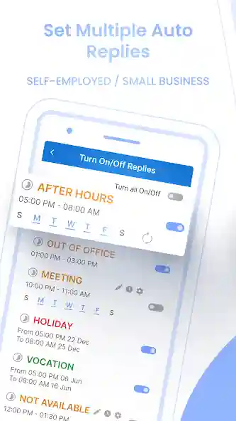 Busy business owners simply cannot remain continuously available to demanding clients every single hour. Establishing clear communication boundaries while simultaneously acknowledging every incoming message carefully builds genuine professional trust. SMS Auto Reply cleanly allows you to fully create separate automated response profiles for distinctly different time periods. A standard working hours profile successfully sends a brief professional acknowledgment promising swift responses. An evening profile efficiently sends tailored messages safely explaining your official business hours. A specific weekend profile intelligently establishes different expectations without making anyone feel dismissed. The internal scheduling feature seamlessly handles the specific profile switching completely automatically.