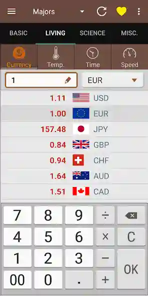 Currency conversion is one of the popular features in any converter app. The Unit Converter Mod Apk does it well. The currency module connects to a live exchange rate feed. Pulls real-time values for every major world currency like USD, EUR, GBP, INR, JPY, AUD, AED, SGD and many more. Unlike apps that use old rates this version updates automatically so your conversions reflect the current market. For travelers comparing prices abroad freelancers billing clients or shoppers buying from overseas stores accurate live rates make a big difference.