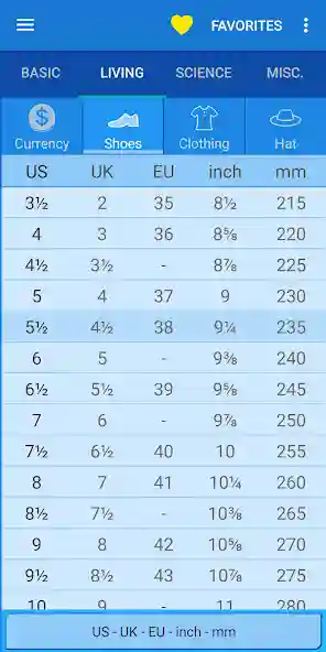 Favorites System for Instant Access to Common Conversions