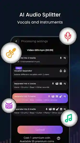 Answer: Yes, you can upload video files directly from your gallery, and the app will extract the audio and split it into stems just like a standard audio track.
