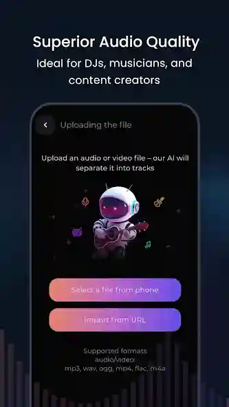 Standard versions of similar apps often limit you to short clips or single songs. The premium features unlocked in the mod version allow you to process audio files up to 30 minutes long. This is incredibly useful if you are working with long DJ mixes, podcast recordings, or live concert performances where you need to isolate specific sections. Being able to drop a full set into the app and have it split into stems saves hours of work that used to require a desktop workstation and expensive plugins.