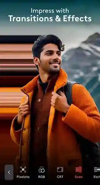 Videoleap includes video effects and filters app content that helps your clips look more cinematic, not just edited. You can use effects like glitch, prism, VHS, and chromatic aberration, plus templates tailored for trending vertical video formats. For finishing touches, it also offers enhancer tools for sharpening, brightness, contrast, saturation, and 4K upscaling. So your transitions and styling can match each platform.